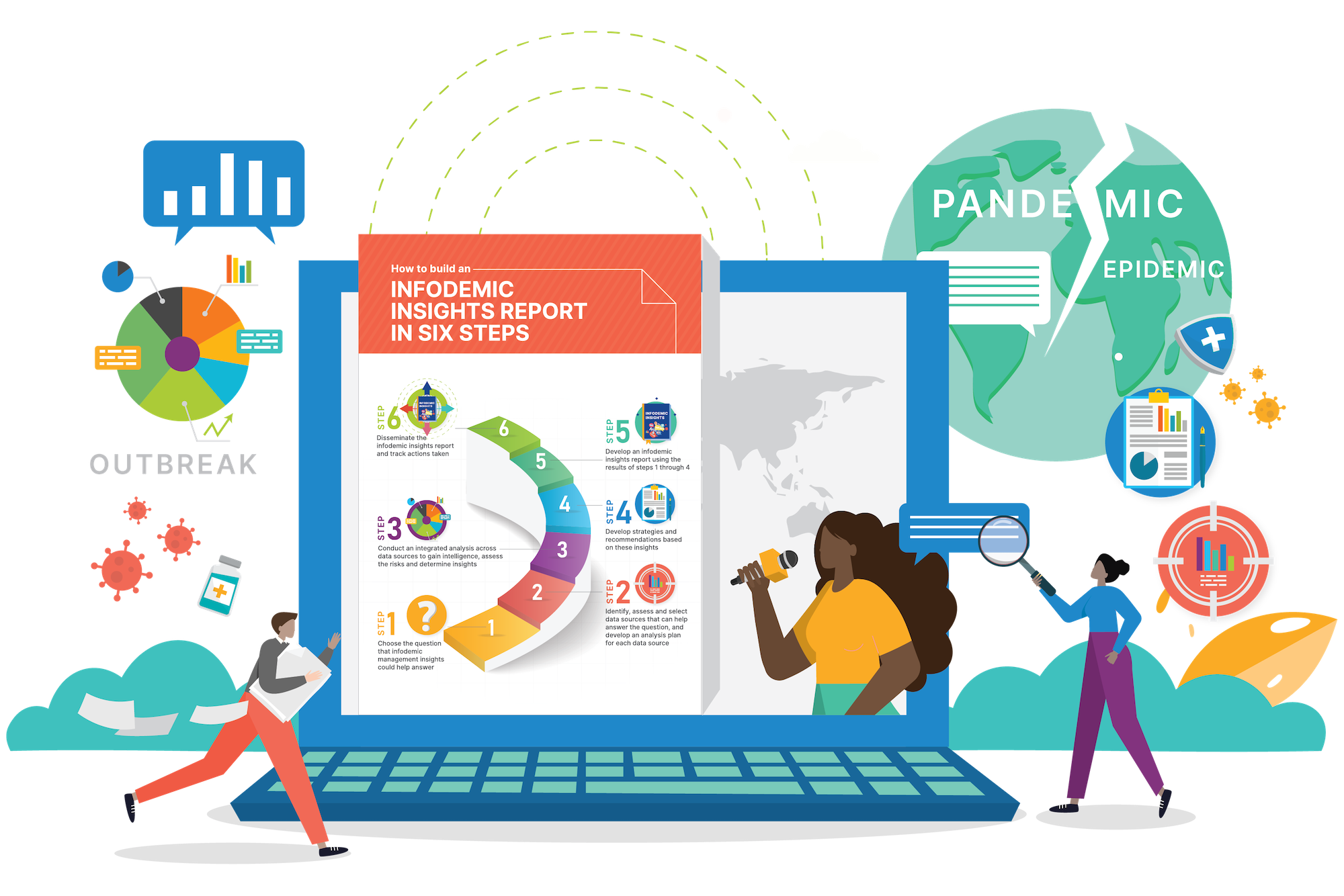 The infodemic insights manual provides guidance for each of the six steps to building an insights report, which include: